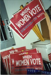 These signs are extremely rare they made a lot of folks nuts during the election, shown here as historical; here in Volusia County this may be the only African Americans sign in one piece. During the 2000 election many signs were painted over and damaged several are in the Who Cares Hall of Fame. When Women Vote signs were very strongly hated by just about every one that was not a Democrat. These are very very rare. (not for sale)