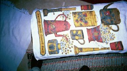 This flag was from Britton Michigan and has photo album of last wagon train from West to East. (1976)